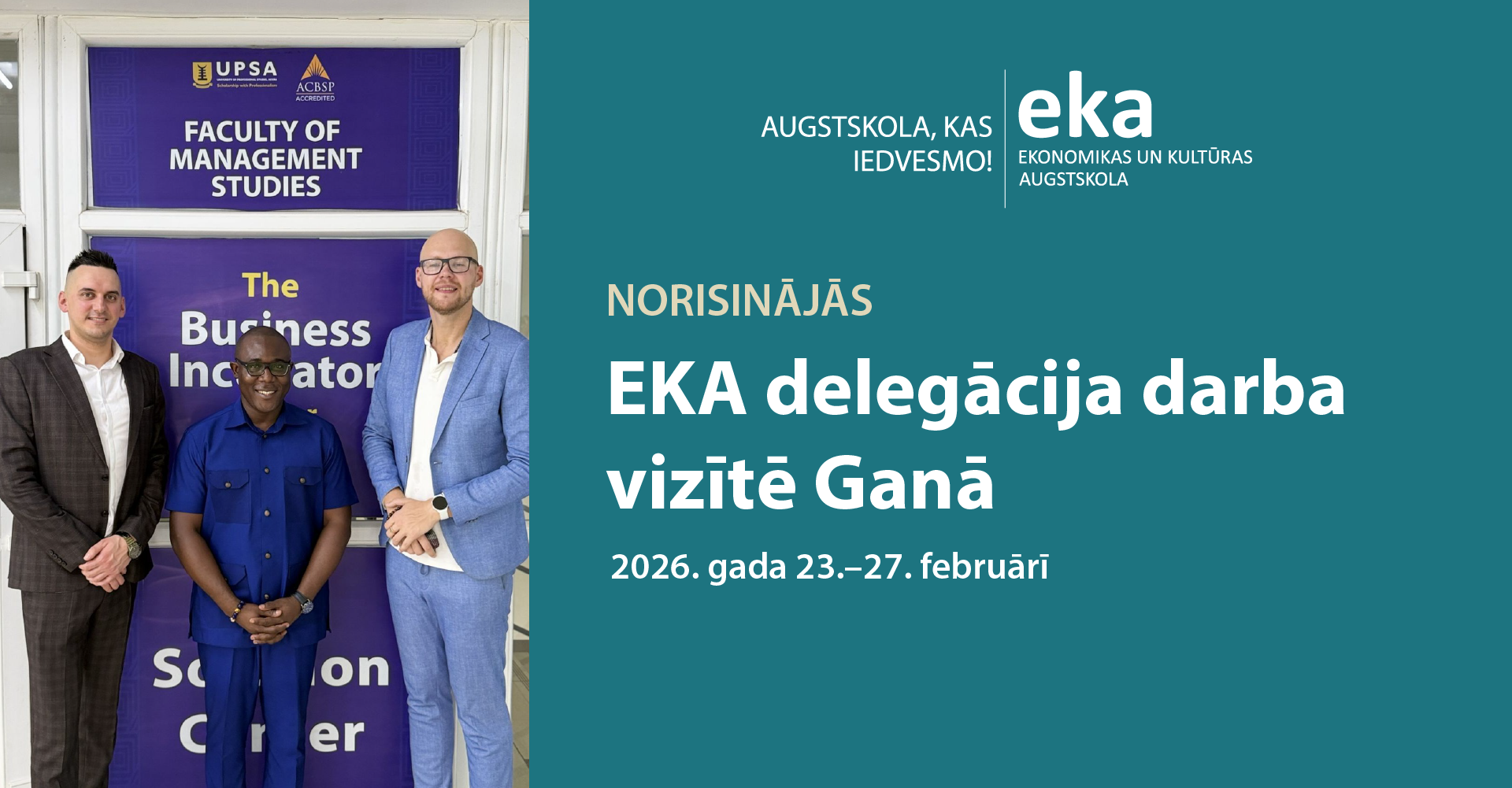 EKA delegācija darba vizītē Ganā Erasmus+ programmas ietvaros. Ekonomikas un kultūras augstskolas (EKA) delegācija Erasmus+ personāla mobilitātes programmas ietvaros devās vienas nedēļas darba vizītē...