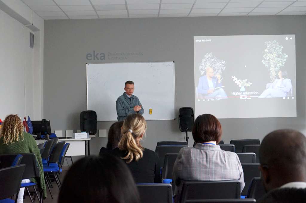 During the annual International Academic Week (IAW 2025) organised by the EKA University of Applied Sciences (EKA), EKA Scientific Institution projects manager Kaspars Šteinbergs introduced the idea and goals of the GREENENTRE4DEAF project, as well as the progress of its implementation, to representatives of the academic staff from 14 countries. IAW 2025 was attended by participants from Austria, Colombia, the Czech Republic, the Dominican Republic, Georgia, Germany, Ghana, Kazakhstan, Latvia, Lithuania, Poland, Slovenia, Turkey, and the USA.