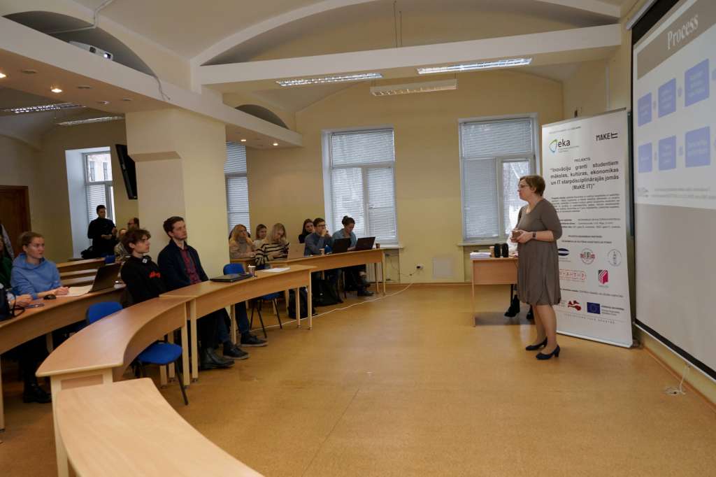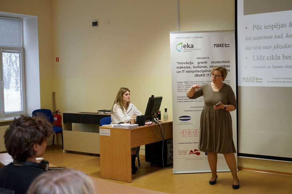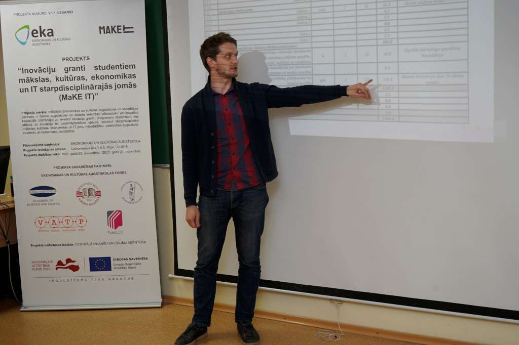 Šī gada oktobrī noslēdzās Ekonomikas un kultūras augstskolas projekta “Inovāciju granti studentiem mākslas, kultūras, ekonomikas un IT starpdisciplinārajās jomās (MaKE IT)” (Nr. 1.1.1.3/21/A/003) pieteikšanās 2. kārtā. Tika saņemti 33 pieteikumi -  8 lielo grantu un 25 mazo grantu pieteikumi. Komandu dalībnieki tika iepazīstināti ar atbalstu un stipendijām, kuru ir iespēja iegūt lielo un mazo grantu komandām. No iesniegtajiem pieteikumiem 24 attiecās uz uzņēmumu vajadzībām, pieci - sabiedrībai svarīgiem problēmjautājumiem un septiņi pieteikumi paredz attīstīt studējošo idejas. Pēc ideju prezentēšanas un aizstāvēšanas projekta komisijai, novembrī 32 komandas uzsāka 4 mēnešu intensīvu darbu ar pieteiktajām idejām.