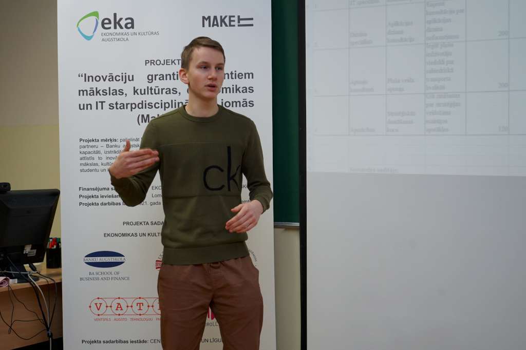 Aktivitātes tiek īstenotas projekta “Inovāciju granti studentiem mākslas, kultūras, ekonomikas un IT starpdisciplinārajās jomās (MaKE IT)”, Nr. 1.1.1.3/21/A/003 ietvaros. Projektu īsteno Ekonomikas un kultūras augstskola, sadarbībā ar partneriem - Ekonomikas un kultūras augstskolas fondu, Banku Augstskolu, Ventspils Augsto tehnoloģiju parku, Alberta koledžu, Latvijas Zinātņu akadēmijas Ekonomikas institūtu un SIA "EUROLCDS".