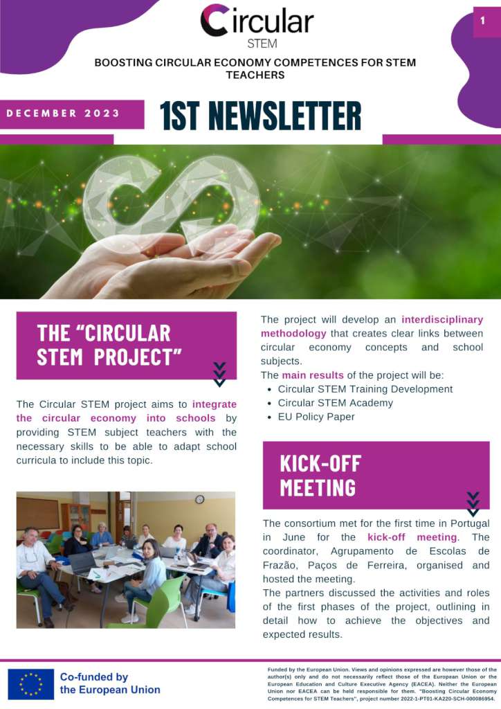 Projektu “Aprites ekonomikas kompetences veicināšana STEM skolotājiem (Circular STEM)” finansē un atbalsta Eiropas Komisija, Erasmus+ programma, KA220-SCH - Sadarbības partnerības skolu izglītībā (Projekta granta līgums Nr. 2022-1-PT01-KA220-SCH-000086954).
