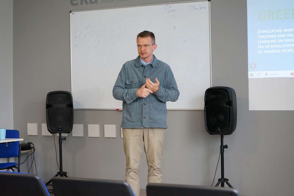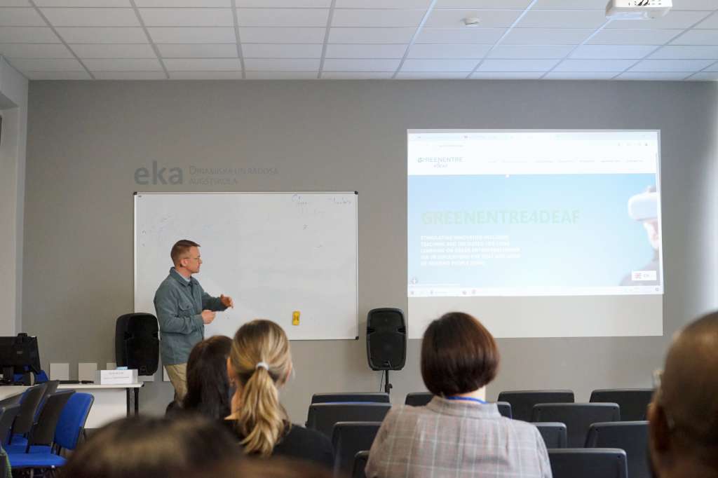 Ekonomikas un kultūras augstskolas (EKA) organizētās ikgadējās Starptautiskās Akadēmiskās nedēļas (IAW 2025) laikā EKA Zinātniskās institūcijas projektu vadītājs Kaspars Šteinbergs ar projekta GREENENTRE4DEAF ideju un mērķiem,  kā arī ar tā ieviešanas gaitu iepazīstināja akadēmiskas vides pārstāvjus no 14 valstīm. IAW 2025 piedalījās dalībnieki no Austrijas, Kolombijas, Čehijas, Dominikānas Republikas, Gruzijas, Vācijas, Ganas, Kazahstānas, Latvijas, Lietuvas, Polijas, Slovēnijas, Turcijas un ASV.