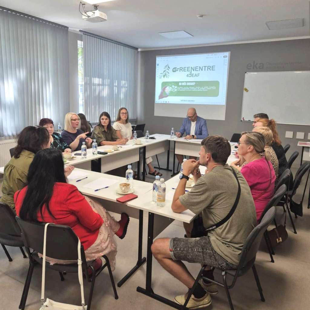 2025. gada 18. jūlijā Ekonomikas un kultūras augstskolā notika pirmā projekta GREENENTRE4DEAF konsultēšanās sesija ar ieinteresētajām pusēm.