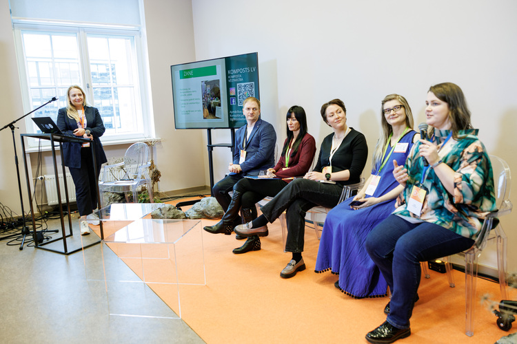 EKA pārstāvis Edgars Čerkovskis, maģistra programmas “Aprites ekonomika un sociālā uzņēmējdarbība” direktors, vadīja diskusiju, kurā piedalījās Diāna Lapkis (New Door), Inga Muižniece (Sonido, LSUA) un Agnese Rakovska (Zvaigznāja komanda). Sarunā tika aktualizēta sociālās uzņēmējdarbības nozīme apritīguma procesos un apliecināta šīs jomas pievienotā vērtība Latvijas ilgtspējīgai attīstībai.