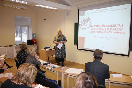 - Vita Stiģe-Škuškovnika, Mg.sc.soc., Alberta koledžas direktores vietniece, studiju programmas "Sabiedriskās attiecības" direktore: Kā iesaistīt studentus pētnieciskajā darbā? Alberta koledžas docētāju pieredze. Prezentācija