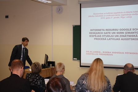 - Anatolijs Prohorovs, Dr.sc.admin., RISEBA vadošais pētnieks: Interneta resursu Google scholar, Research Gate un SSRN izmantošanas iespējas studiju un zinātniskā darba procesā Latvijas augstskolās. Prezentācija