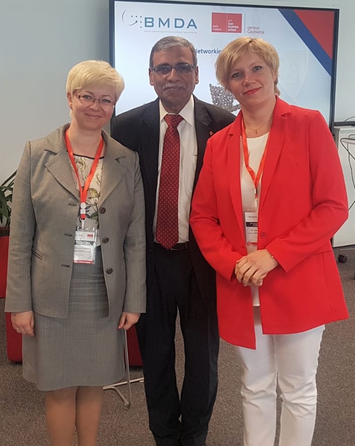 Actual trends in international business in cross-cultural context and the role of higher educational institutions in it were discussed with participants from Morocco, China, USA, United Kingdom, Ukraine, Poland, Russia, France, Estonia, Lithuania, Kazakhstan, Germany. Chair of the conference prof. Dipak C.Jain (CEIBS, China) presented trends in evolution and transformation of the business education and discussed about role of business schools.