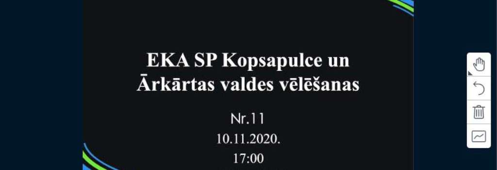 10.11.2020. attālināti norisinājās EKA SP kopsapulce un ārkārtas vēlēšanas. To laikā amatiem tika izvirzīta jaunā EKA SP finansiste Katrīna Uva Jansone un sekretāre Laura Zalāne. Uz Akadēmiskā virziena vadītāja vietu kandidēja un to guva Andris Miezis.