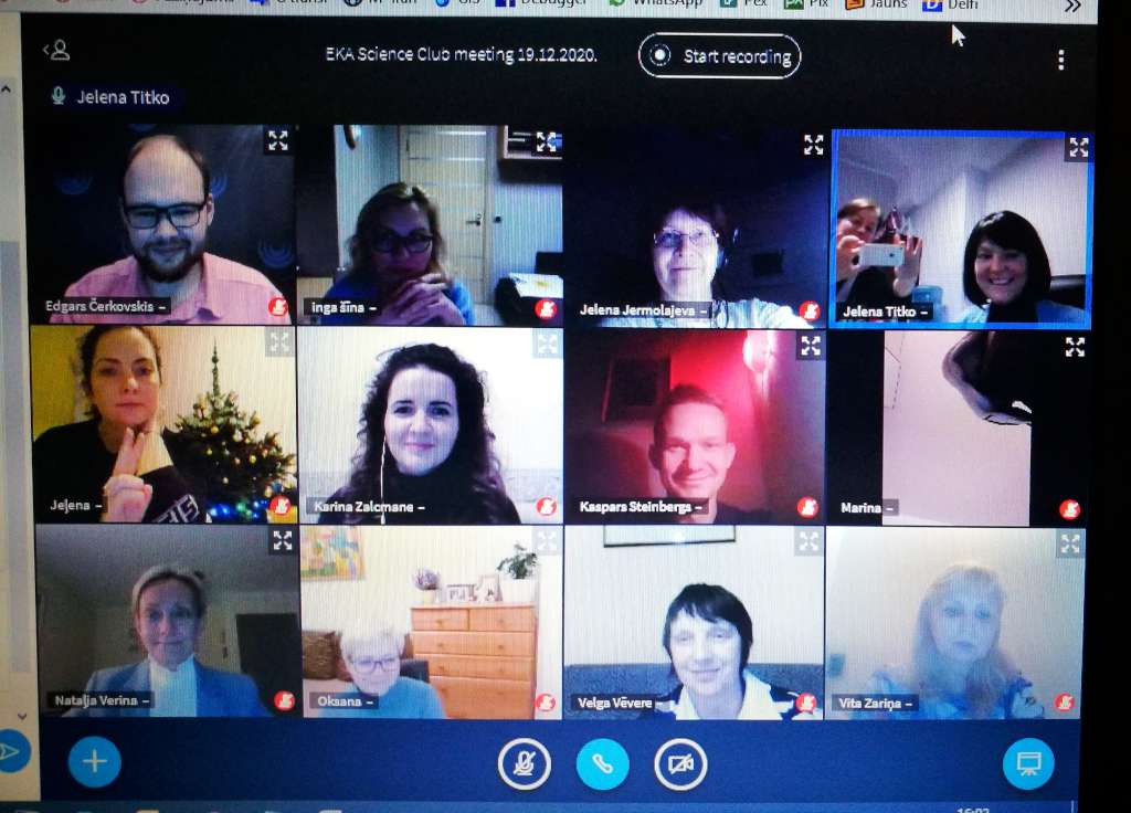 Virtuālajā sapulcē piedalījās EKA Rektore Oksana Lentjušenkova, kā arī EKA docētāji – esošie un potenciālie kluba biedri.