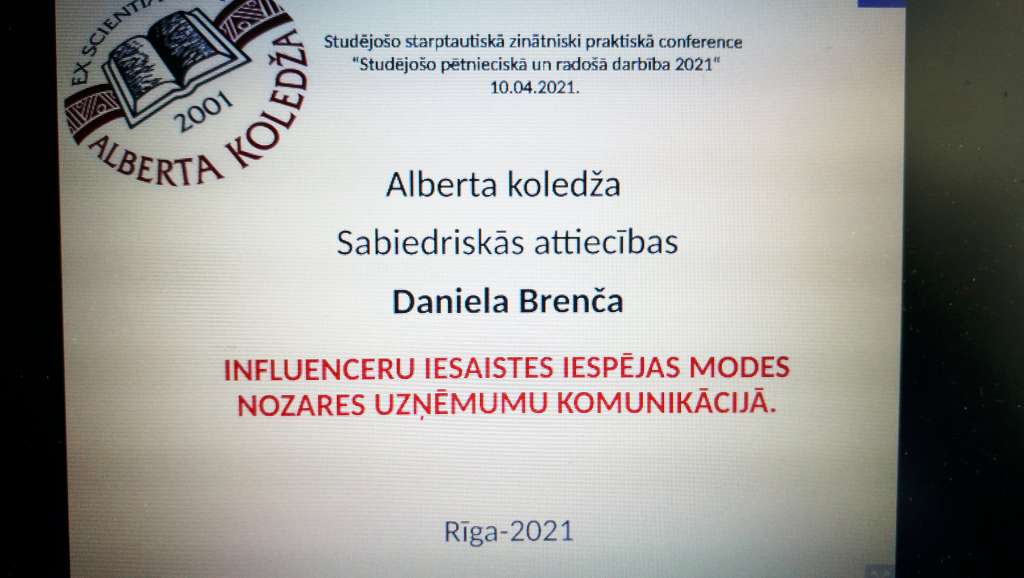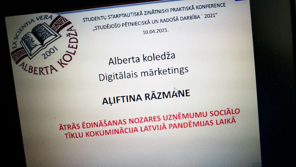 9. un 10. aprīlī tiešsaistē norisinājās Ekonomikas un kultūras augstskolas un Alberta koledžas studējošo zinātniski praktiskā konference „Studējošo pētnieciskā un radošā darbība′2021”. Tās laikā dalībnieki iepazīstināja un iepazinās ar sava pētnieciskā darba rezultātiem par aktuāliem teorijas un prakses jautājumiem saistībā ar studiju procesā iegūtajām zināšanām un to pielietošanu pētniecības iemaņu apgūšanā.
