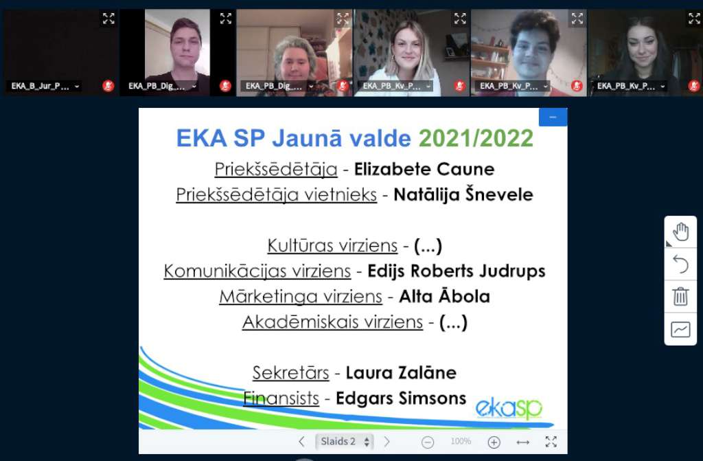 Attālināti ir noritējušas Ekonomikas un kultūras augstskolas Studējošo pašpārvaldes (EKA SP) valdes vēlēšanas, kuru laikā tika noskaidrota jaunā komanda, kas tālāk veidos veiksmīgu pašpārvaldes nākotni.