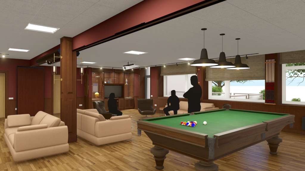 Dizaina koncepts ir izveidot telpas, kur varētu atpūsties, smelties spēku un enerģiju, uz brīdi aizmirstot par ikdienas rūpēm. Telpu plānojums un dizains ir veidots ergonomisks, funkcionāls un atbilstošs Nacionālās aizsardzības akadēmijas identitātei. „Ņemot vērā klienta vēlmes un iestādes nozīmīgumu, tika izstrādāta dizaina koncepta ideja „Granātābols”, par iedvesmas avotu ņemot NAA ģerboni un tā krāsas,” atklāj projekta autore Elīna Dambīte. Lai ideju akcentētu, par dominējošo akcenta toni telpām izvēlēta karmīnsarkanā krāsa, kas lieliski mijiedarbojas ar neitrāliem pamata toņiem un dekoratīvajiem koka apdares materiāliem.