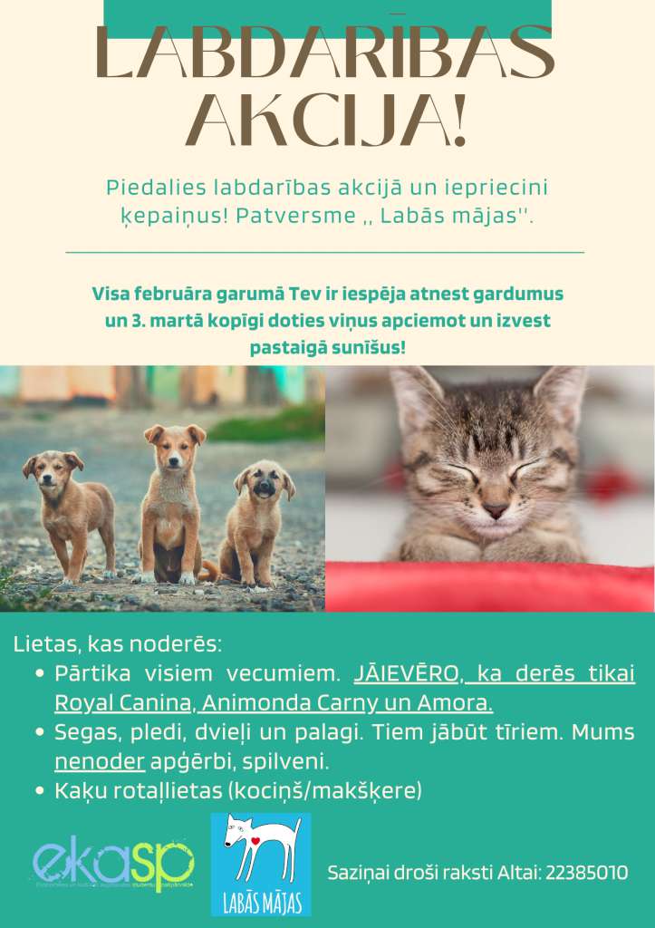 EKA SP aicina visa februāra garumā ziedot dažādus labumiņus suņiem un kaķiem. Iepriecināsim patversmes dzīvnieciņus kopā!