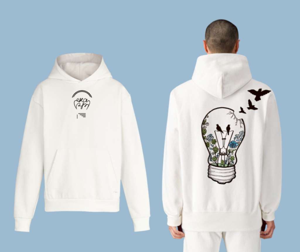 Neliels logo priekšpusē un ideju, drosmes un radošuma spuldze uz muguras sasildīs un radīs kopības sajūtu ik brīdi!