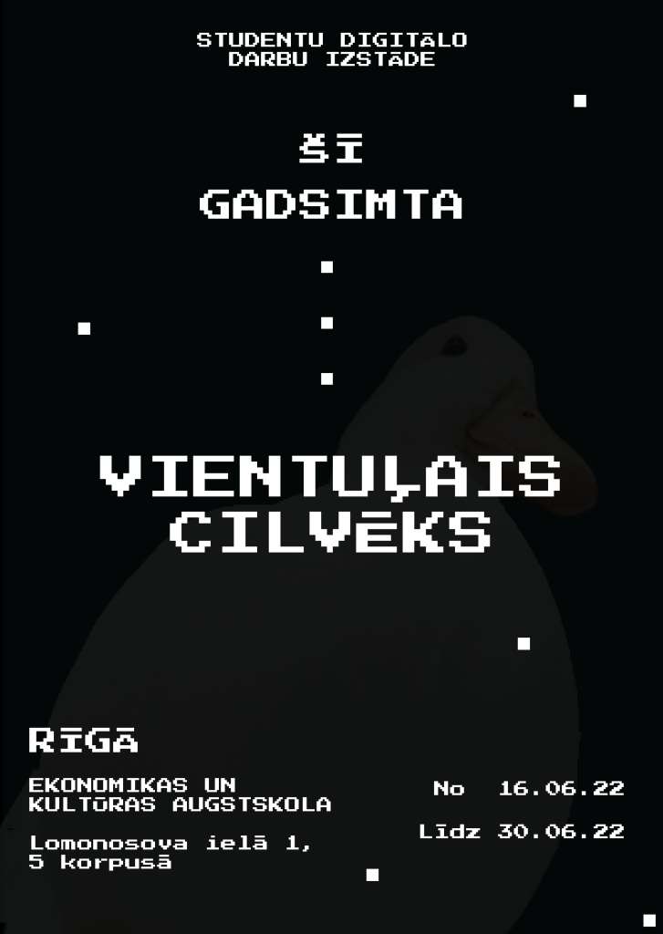 16. jūnijā, plkst. 17.00, EKA Gleznošanas un zīmēšanas zālē notiks Datorspēļu dizaina un grafikas 4. kursa studentu plakātu izstādes "Mūsu gadsimta vientuļais cilvēks" atklāšana.