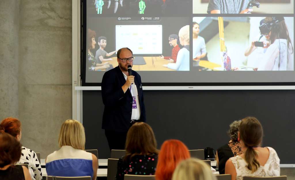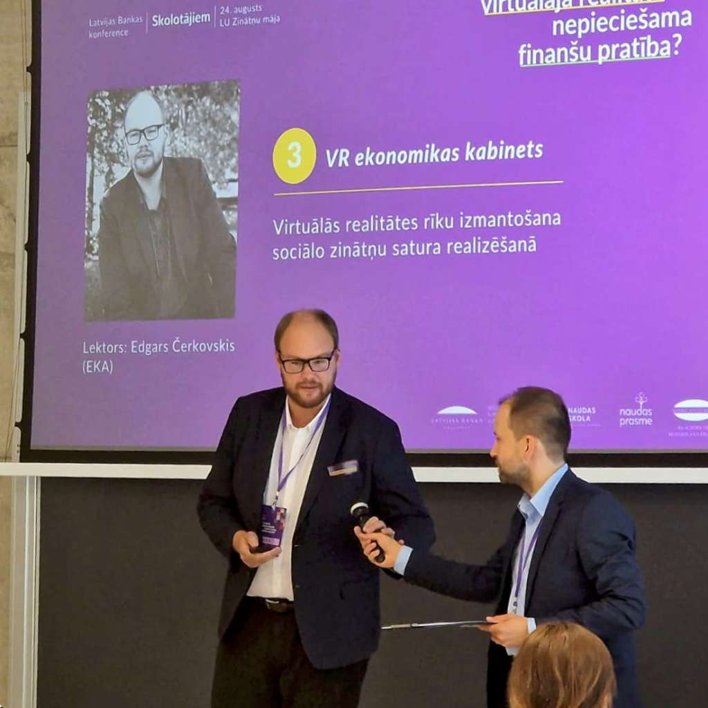 EKA docētājs Latvijas Bankas konferencē skolotājiem iepazīstina ar virtuālās realitātes izmantošanu mācību procesā