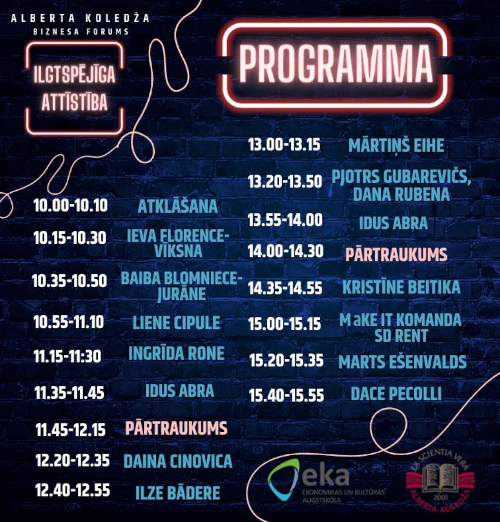 Biznesa forums ir Alberta koledžas tradīcija, un šoreiz, pēc pandēmijas, tas atkal notiks klātienē, radošajās telpās “Fantadroms” ().