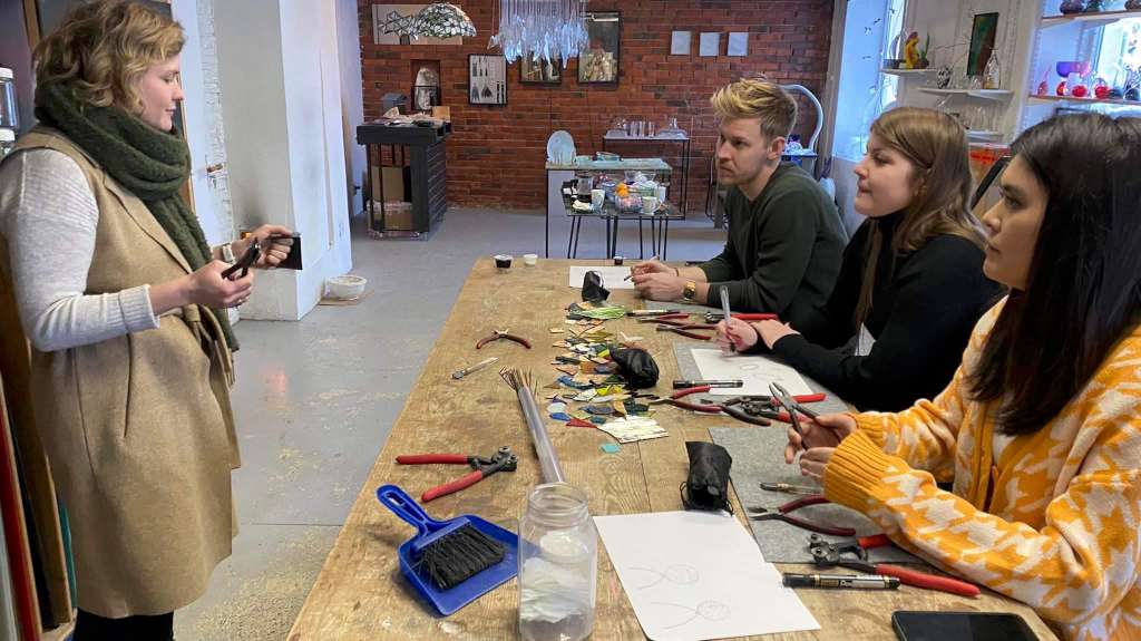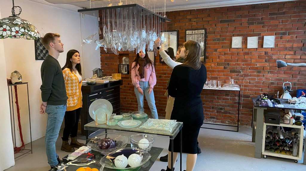 Zīmola dizaina studentiem ieguvumiem bagāta vieslekcija stikla mākslas studijā GLASS POINT