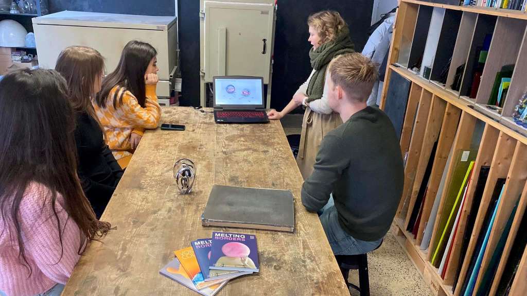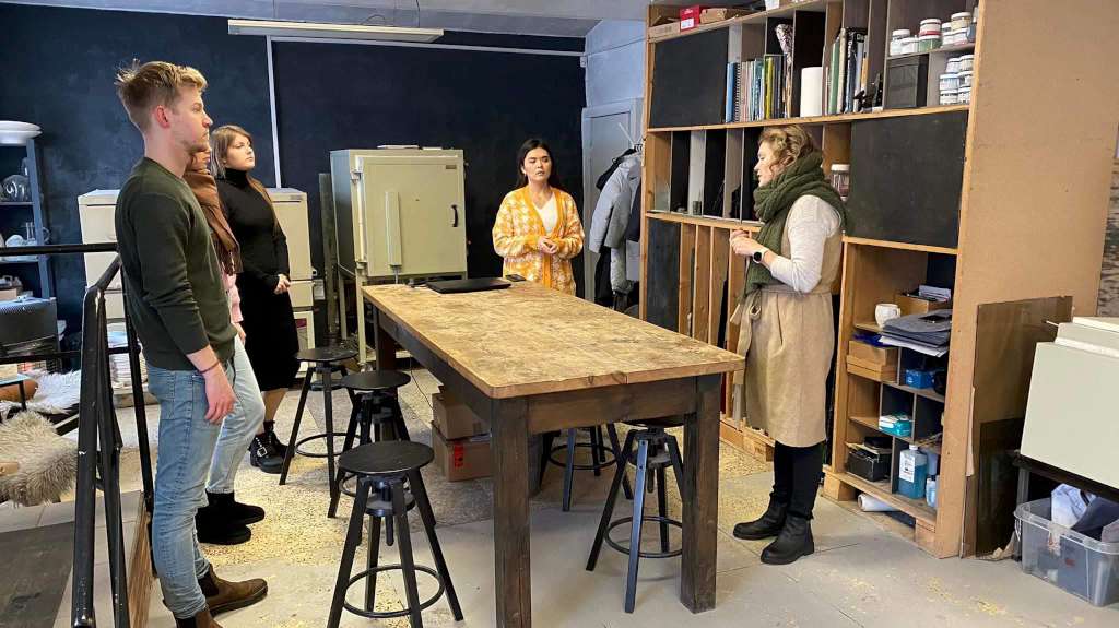 Apgūstot kursu "Laikmetīgā māksla", Ekonomikas un kultūras augstskolas maģistra programmas "Zīmola dizains" studenti ciemojās stikla mākslas studijā GLASS POINT, pie stikla mākslinieces Annas Heinsbergas Varnases. Vieslekcijas laikā studenti apskatīja studijā esošos un topošos laikmetīgos mākslas darbus, iepazinās ar studijas tapšanas un attīstības gaitu, uzzināja, kā tiek veidots skiču bloks un mākslinieka portfolio, kā veidot veiksmīgu sadarbību ar klientu, kā arī izzināja laimetīgās mākslas un biznesa simbiozes pamatprincipus.