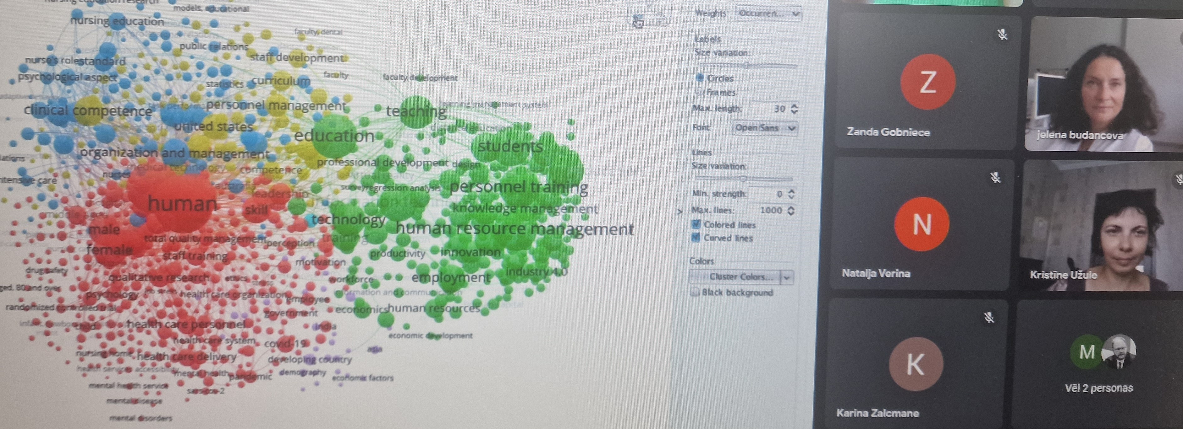 Tiešsaistes sesijas bija veltītas EKA akadēmiskā personāla un EKA Zinātniskās institūcijas darbinieku pētniecības kapacitātes un zinātniskas rakstīšanas prasmju stiprināšanai. Īpaša uzmanība studiju laikā tika veltīta bibliometriskai analīzei pētot Scopus zinātniskajā datu bāzē iegūtus datus, kā arī praktiskām iemaņām vizualizējot un apstrādājot datus izmantojot VosViewer rīku.
