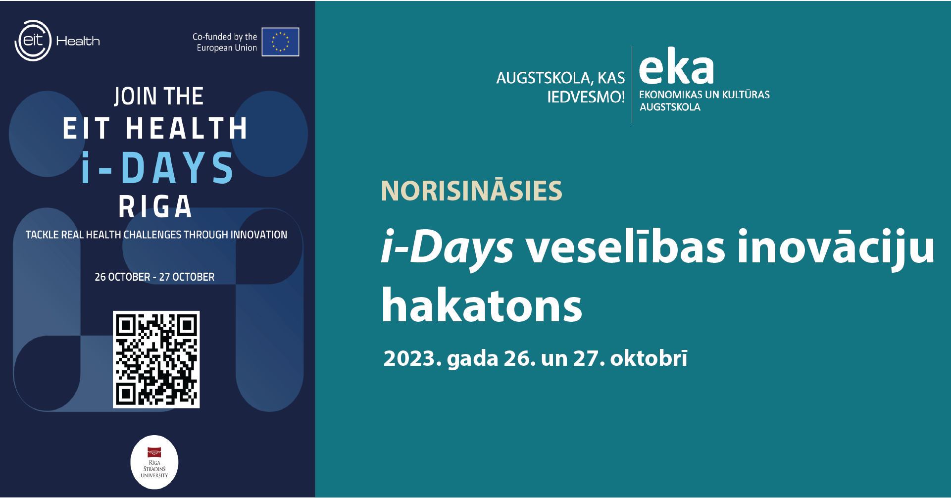 Pievienojies EIT Health un Rīgas Stradiņa universitātes rīkotajam i-Days hakatonam 2023. gada 26. un 27. oktobrī tiešsaistē! Klausies iedvesmojošus runātājus, kuri dalīsies pieredzē par veselības inovācijām un uzņēmējdarbību! Iepazīsties ar praktiskiem inovāciju darbarīkiem un prasmēm, attīsti savu dizaina domāšanu, ideju prezentācijas prasmes un pārliecību par savām inovāciju spējām! Konkurē ar citām komandām, risinot veselības aprūpes izaicinājumus, un sacenties par iespēju piedalīties finālā Barselonā!