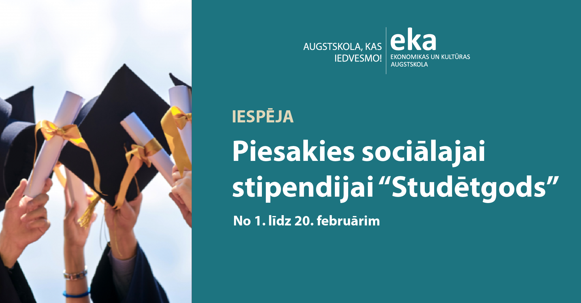 No 1. līdz 20. februārim studenti līdz 25 gadu vecumam (ieskaitot), kas atbilst noteiktiem kritērijiem, var pieteikties sociālajai stipendijai “Studētgods” 175 eiro apmērā mēnesī. Pieteikums jāiesniedz elektroniski, izmantojot Latvija.lv pakalpojumu “Studētgods”.