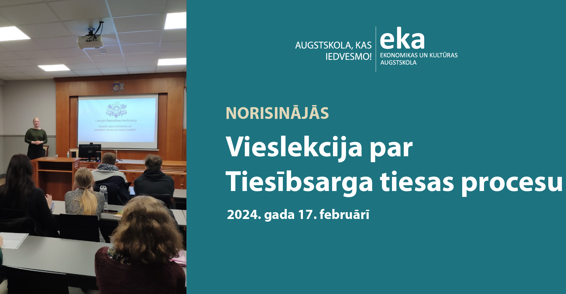 17. februārī Ekonomikas un kultūras augstskolā norisinājās vieslekcija “Tiesībsargs un Tiesībsarga tiesas procesa izspēle cilvēktiesībās”.