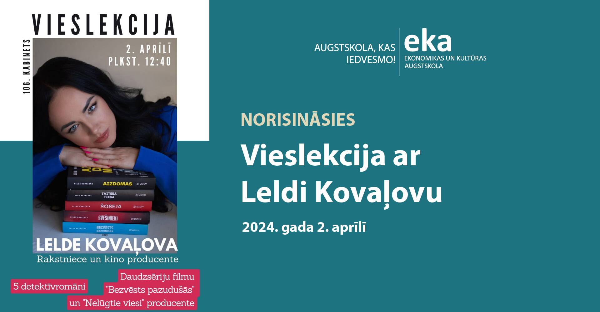 Uzzini vairāk par Leldi Kovaļovu, kuras detektīvromāni kļuvuši par lasītāju favorītiem un kuras producētie kino projekti "Bezvēsts pazudušās" un "Nelūgtie viesi" pievērsuši uzmanību plašai auditorijai un kļuvušas par skatītākajām daudzsēriju filmām "Tet.tv" platformā. Tāpat Lelde Kovaļova pasniedz kino producēšanu.
