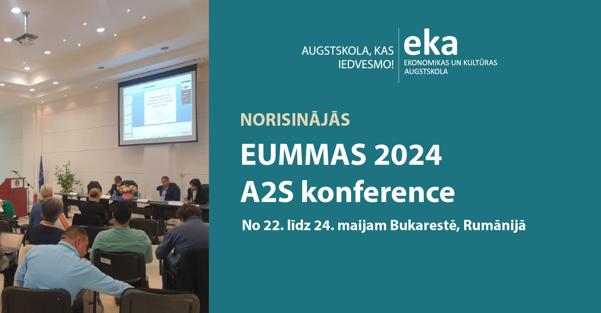 No 22. līdz 24. maijam 2024. gadā EKA Augstskola kā Eiropas Mārketinga un Menedžmenta asociācijas (EUMMAS) dalībnieks pirmo reizi piedalījās EUMMAS A2S konferencē par Globālo Sociālo un Tehnoloģisko Attīstību un Ilgtspējību, kas notika Bukarestē, Rumānijā.