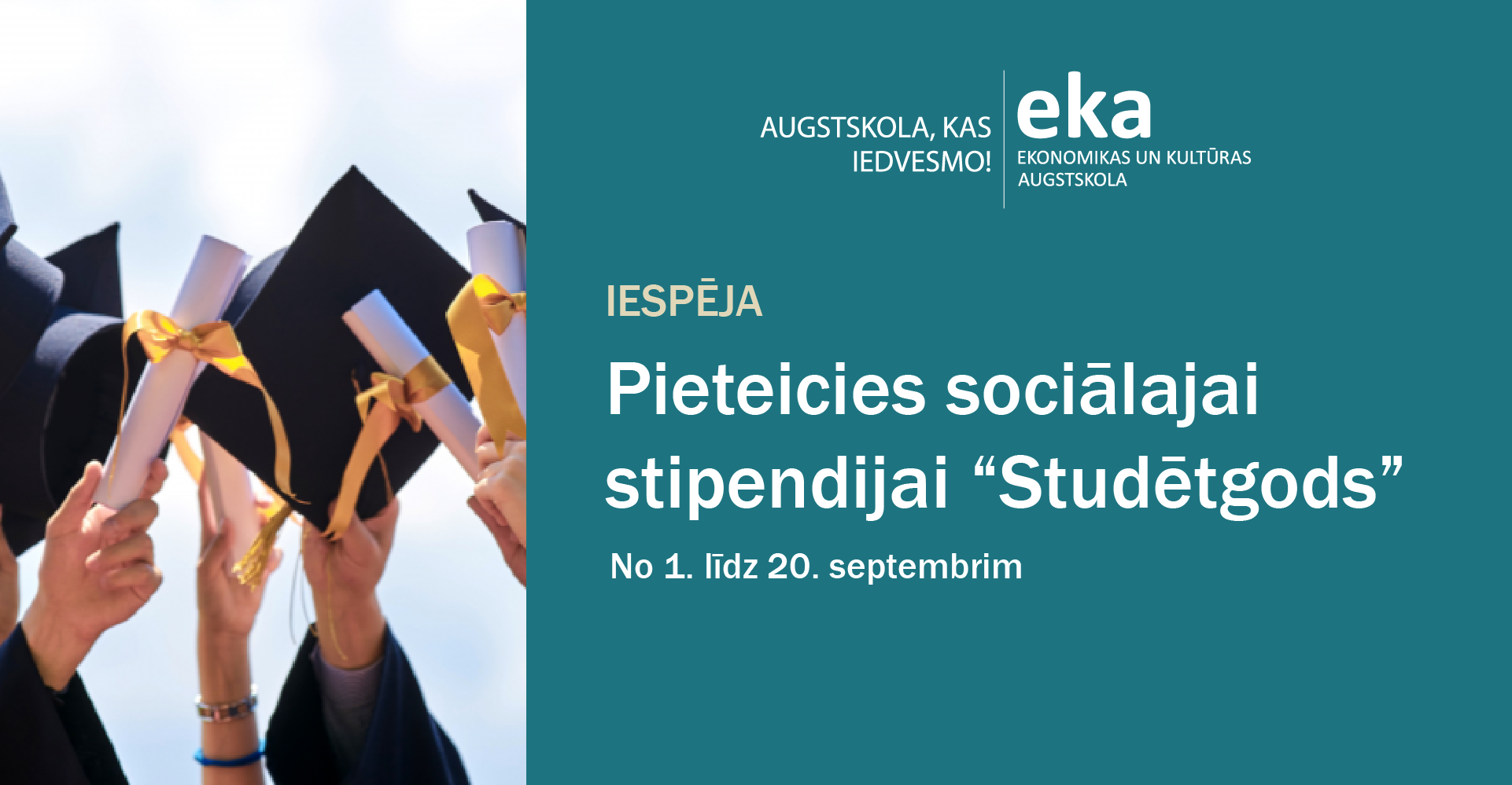 No 1. līdz 20. septembrim Latvijas augstskolu pilna laika klātienes bakalaura un koledžas līmeņa studenti līdz 25 gadu vecumam var pieteikties sociālajai stipendijai “Studētgods”. Pieteikums jāiesniedz elektroniski portālā Latvija.lv pakalpojumā “Studētgods”. Sociālās stipendijas “Studētgods” apmērs ir 175 eiro mēnesī.