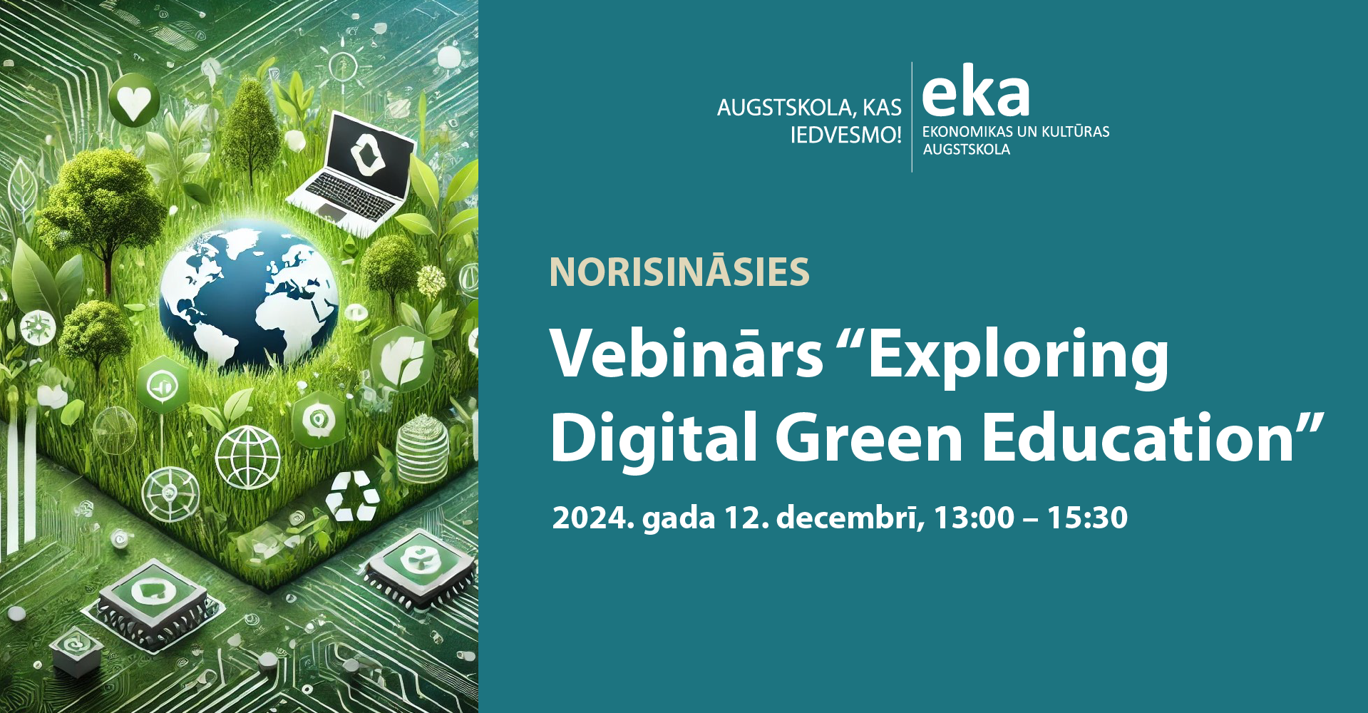European Digital Learning Network (www.dlearn.eu) un EKA augstskola aicina piedalīties vebinārā: “Supporting the green and digital transitions in education and training: greening the Future: Exploring Digital Green Education”.