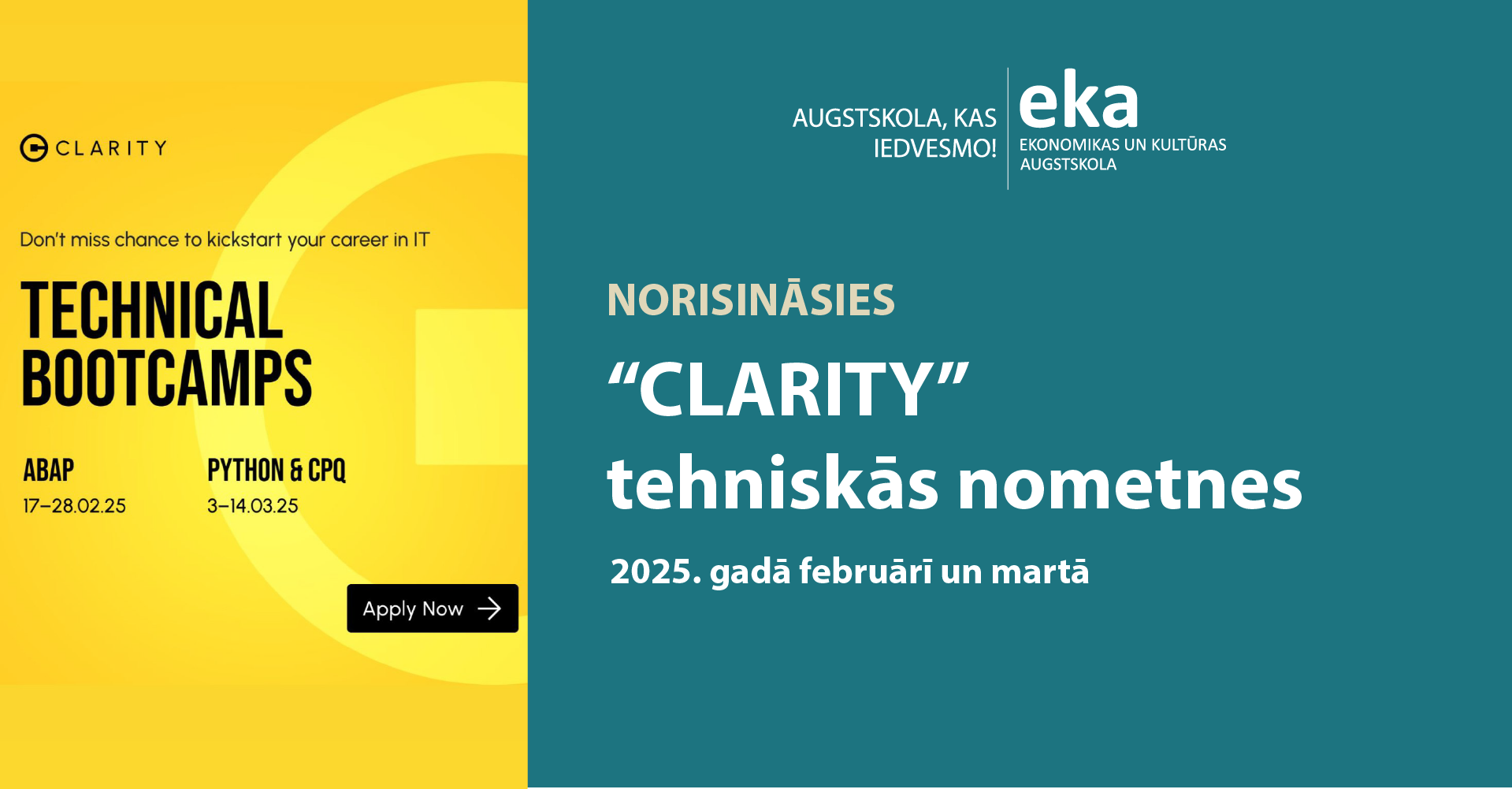 Lai iegūtu vairāk informācijas un pieteiktos, apmeklē: https://www.clarity.cx/bootcamps/