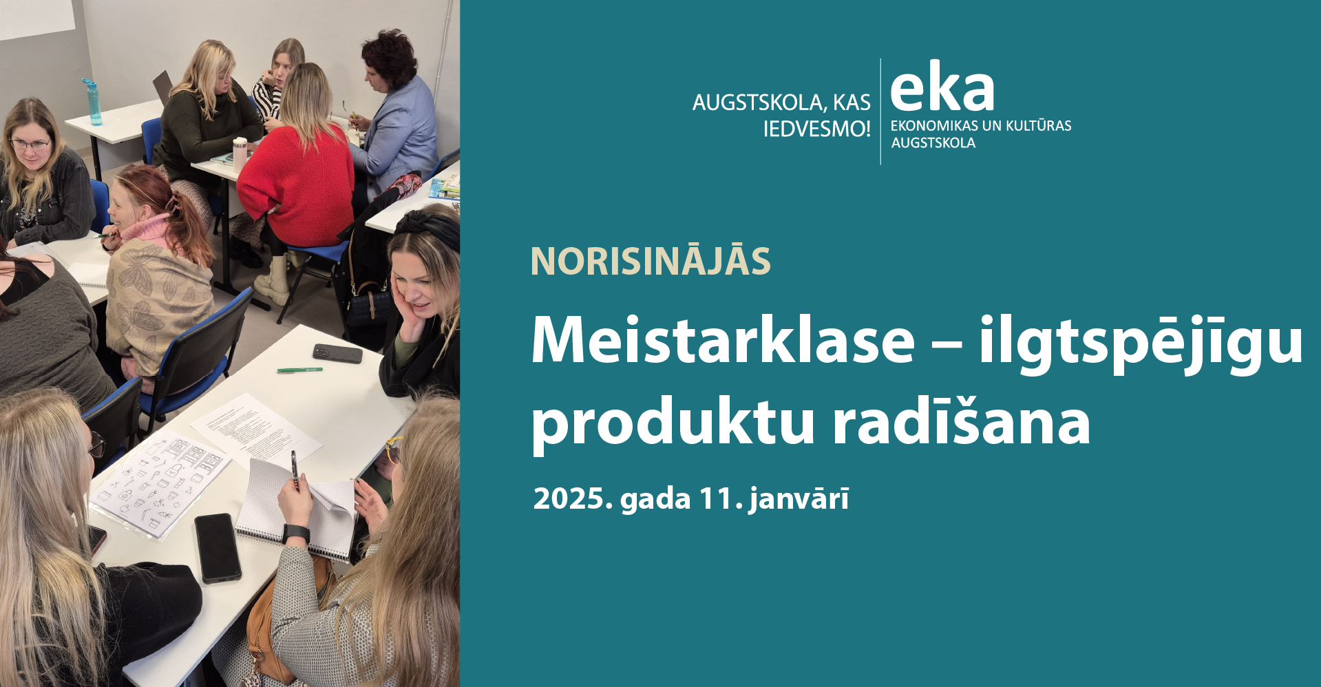 Ekonomikas un kultūras augstskolā notika radošā darbnīca, kuru vadīja Agnese Gaidelone no uzņēmuma ieber.lv. Meistarklases laikā studenti apguva praktiskas pieejas ilgtspējīgu produktu un uzņēmumu radīšanā, kā arī iedziļinājās aprites ekonomikas principos.