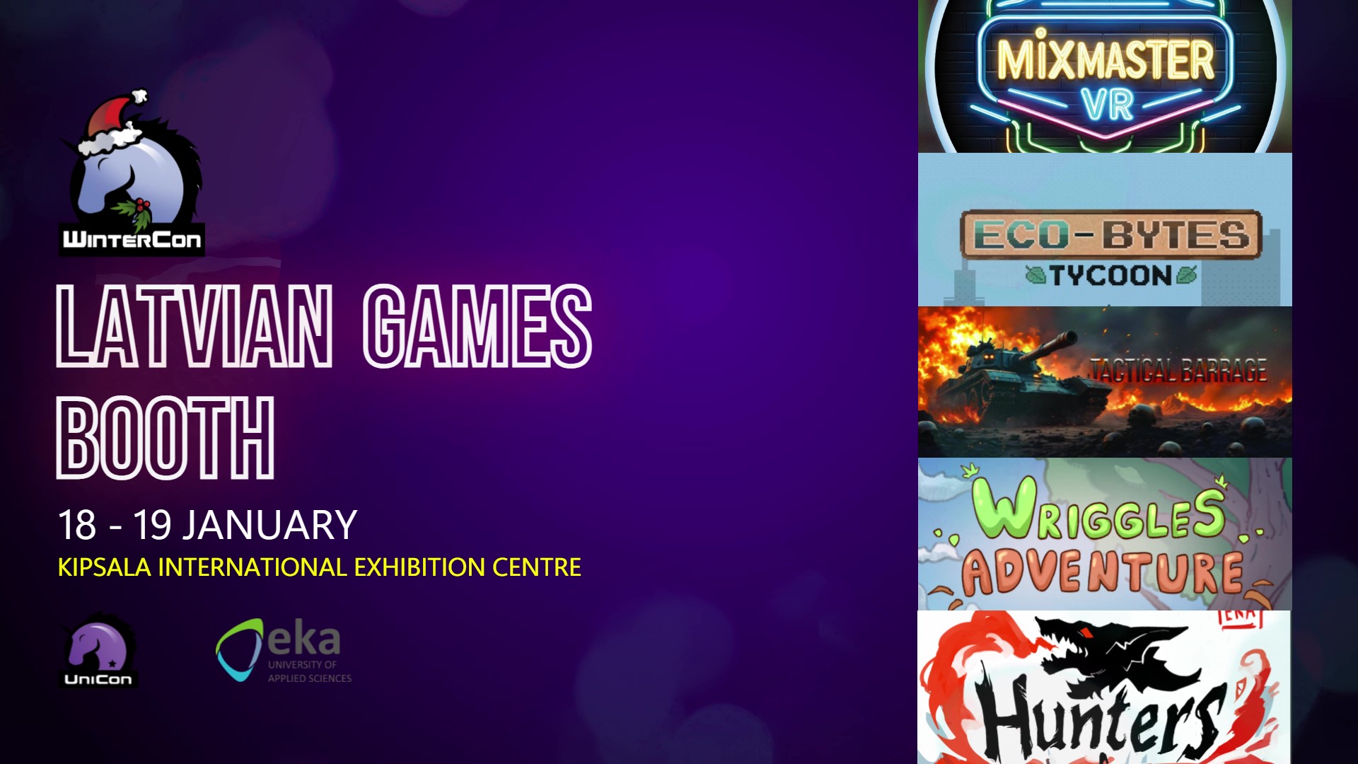 Latvijas spēļu stends tiek organizēts sadarbība ar “UniCon Latvia”, Ekonomikas un Kultūras augstskolu un Lauru Vilsoni.