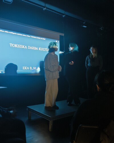 Video par toksisku darba vidi izveidoja “Mārketings” studentes Karolīna Pogule, Amanda Paula Sadovska un Olga Lungina. Šis video savukārt tika filmēts reāla uzņēmuma telpās un vadītājas lomā bija reāla vadītāja.