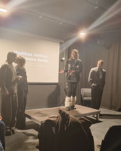 Studiju kursā “Vadības zinības” jau otro gadu norisinājās noslēguma darbu skate - radošo projektu prezentācijas. 9. janvārī studiju programmu “Mārketings” un “Kultūras vadība” 1. kursa dienas grupas prezentēja studiju kursā izstrādātos video vai galda spēles. Kopumā abu programmu komandas izstrādāja trīs galda spēles un astoņi video.