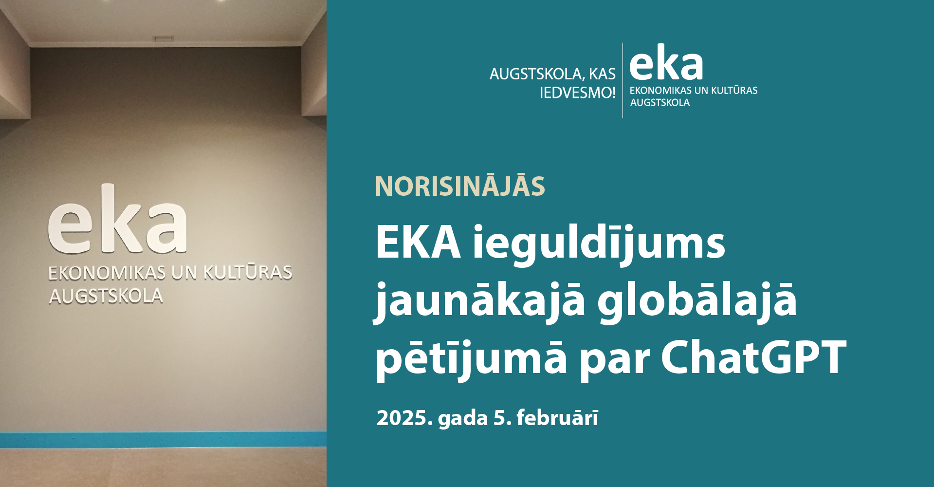 EKA augstskola tās Zinātnes un starptautiskās sadarbības prorektora J. Titko personā sniedza nozīmīgu ieguldījumu jaunākajā globālajā pētījumā "Augstākās izglītības studentu uztvere par ChatGPT: globāls agrīno reakciju pētījums", kas publicēts PLOS ONE.