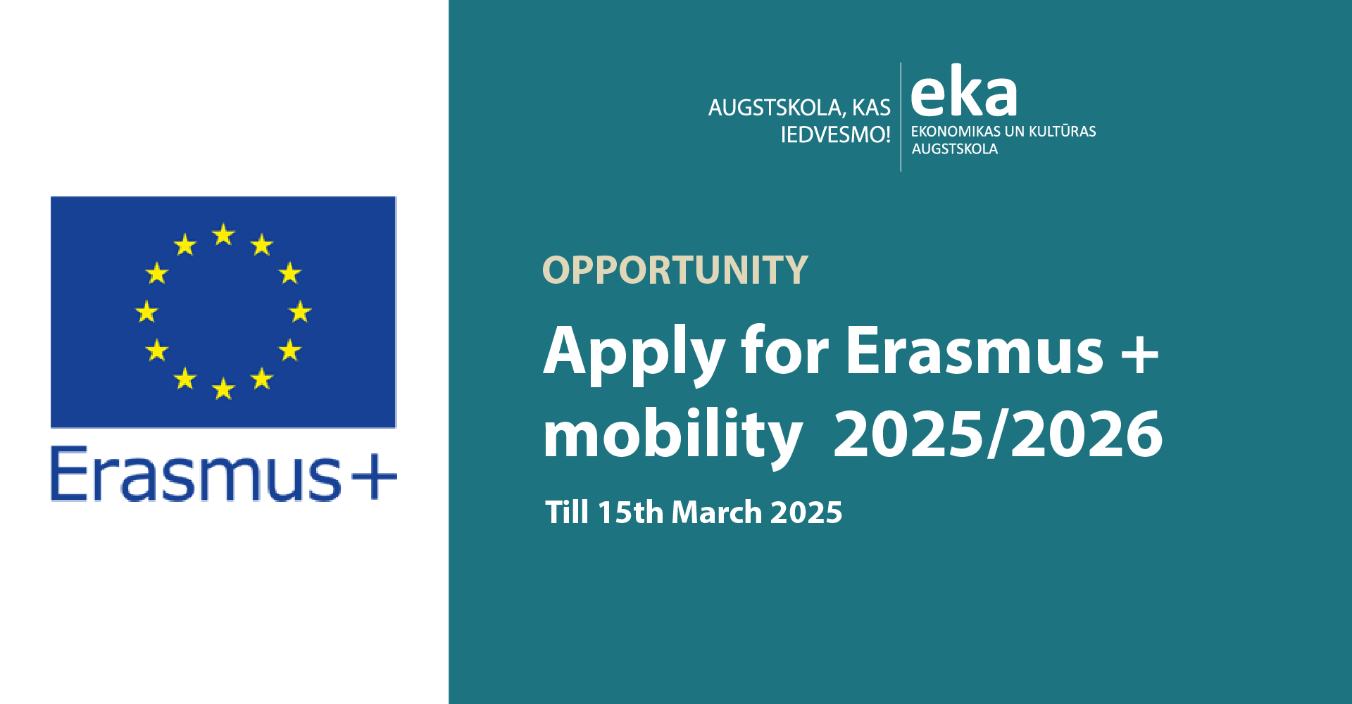 EKA University of Applied Sciences announces the opening of a competition for the Erasmus+ Student Exchange Programme for studies and traineeships in the Autumn Semester of 2025.