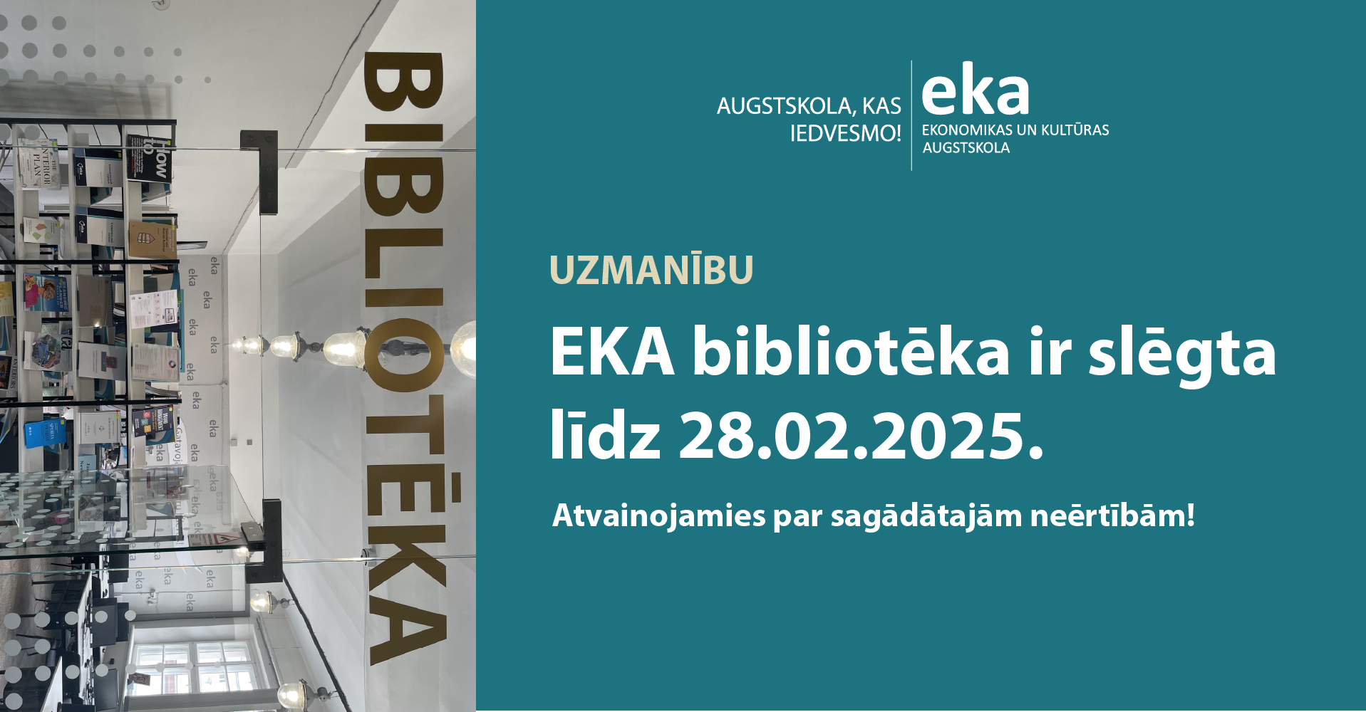 Tehnisku iemeslu dēļ, EKA bibliotēka ir slēgta līdz 28.02.2025. (ieskaitot).