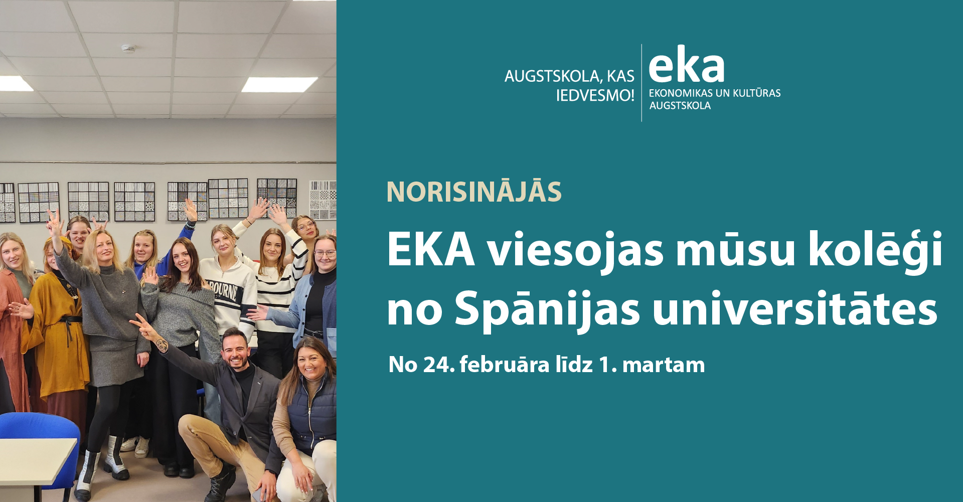 No 24. februāra līdz 1. martam EKA augstskolā viesojas mūsu kolēģi Félix Guerrero Blanco un Ada Martínez Marfil no Spānijas universitātes Escuela Superior de Arte y Diseño de Andalucía – ESADA (Granada). Šī augstskola specializējas mākslā un dizainā un piedāvā Erasmus+ apmaiņas iespējas dažādās jomās: