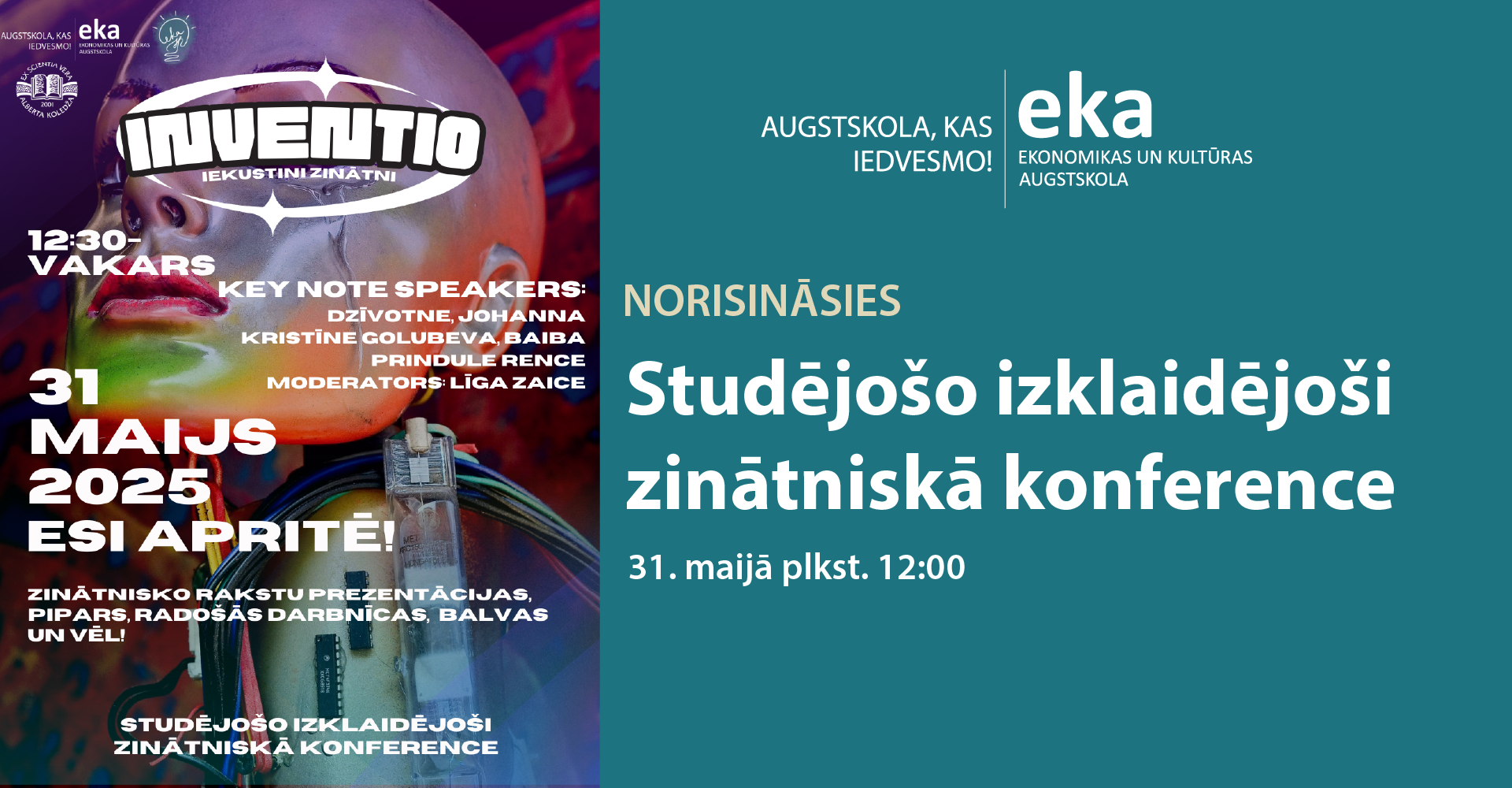 Tiekamies 31. maijā plkst. 12:00 Ekonomikas un kultūras augstskolā, kur dienas garumā uzklausīsim dažādu viesu runas, smelsimies jaunu informāciju sekcijās no studentu zinātniskajiem pētījumiem, kā arī pavadīsim laiku radoši gan kulinārijas gan radošu meistarklašu darbnīcās.