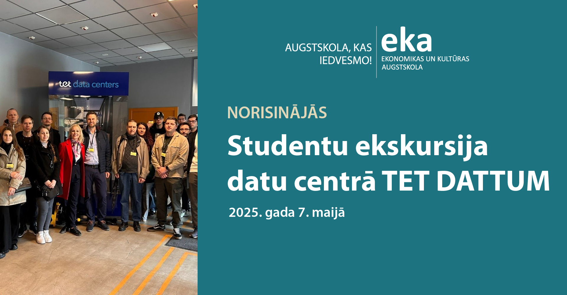 7. maijā, Ekonomikas un kultūras augstskolas (EKA) un Alberta koledžas informācijas tehnoloģiju programmu studenti (15 topošie speciālisti) kopā ar IT studijas programmas mācībspēku Aivaru Heringu, devās izzinošā un vērtīgā ekskursijā uz TET DATTUM datu centru Rīgā. Šī bija unikāla iespēja studentiem klātienē apskatīt vienu no kritiskākajām mūsdienu digitālās pasaules infrastruktūras sastāvdaļām un tikties ar nozares vadošajiem ekspertiem.