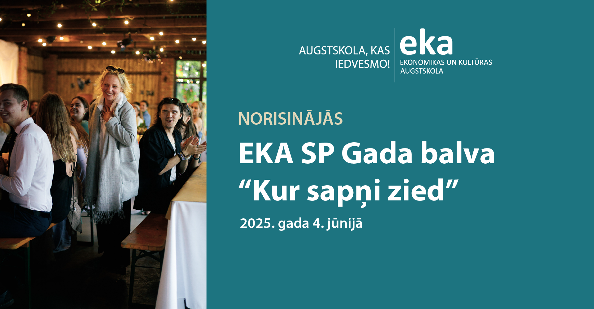 4. jūnijā Latvijas Universitātes Botāniskā dārza pasākumu telpā “Šķūnis” norisinājās gada sirsnīgākais un īpašākais notikums – Ekonomikas un Kultūras augstskolas Studentu pašpārvaldes (EKA SP) pasākums “Gada balva”. Šogad īpašā gaisotnē atzīmējām arī EKA SP 19. dzimšanas dienu.