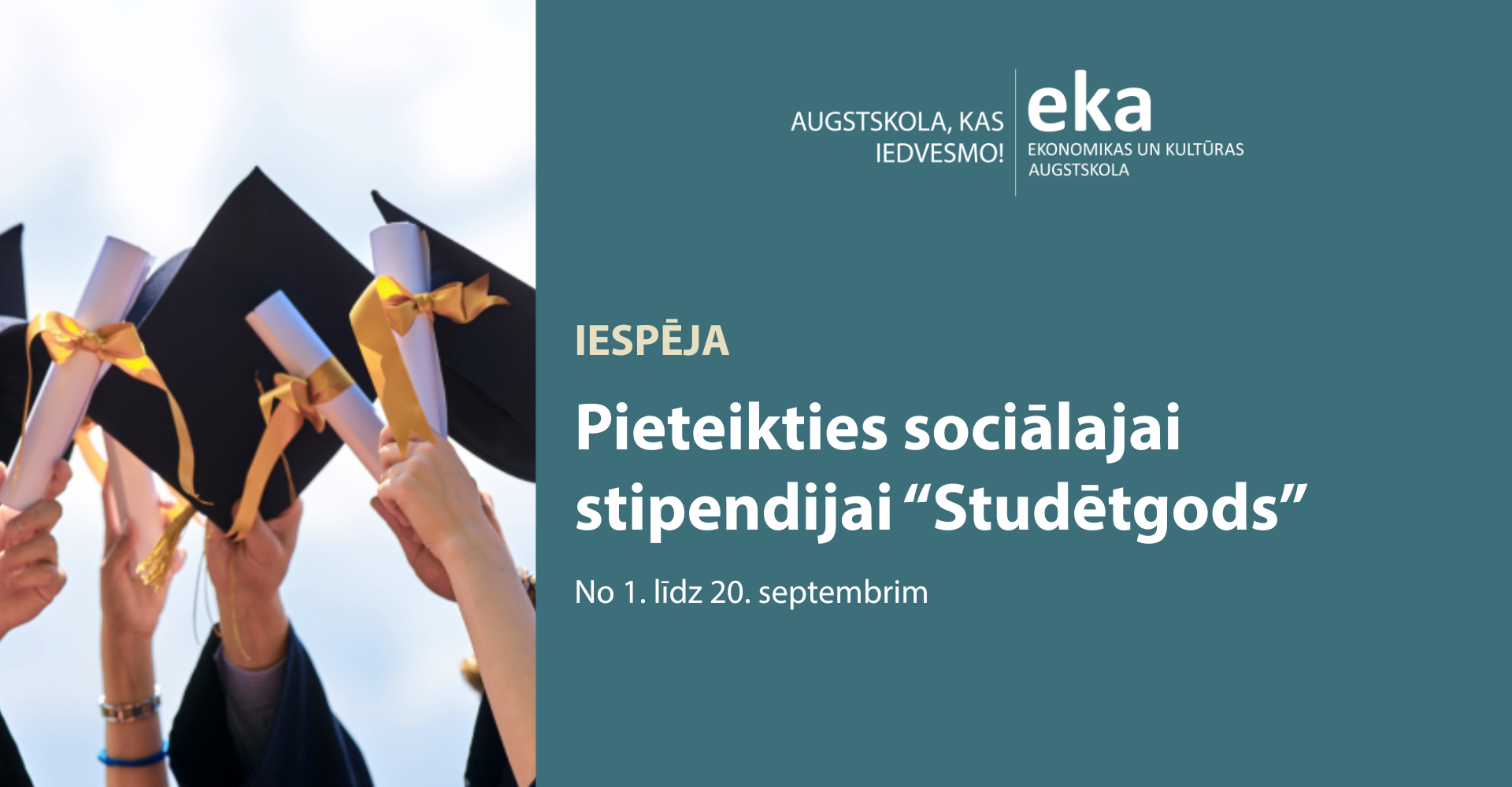 No 1. līdz 20. septembrim Latvijas augstskolu pilna laika klātienes bakalaura un koledžas līmeņa studenti līdz 25 gadu vecumam (ieskaitot) var pieteikties sociālajai stipendijai. Pieteikums jāiesniedz elektroniski portālā Latvija.lv pakalpojumā “Studētgods”. Sociālās stipendijas apmērs ir 180 eiro mēnesī.