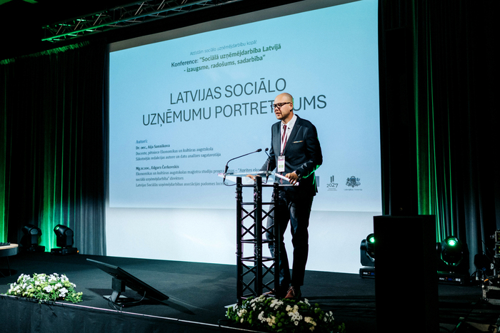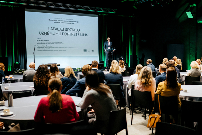 EKA pārstāvji prezentē Latvijas sociālo uzņēmumu portretējumu Labklājības ministrijas konferencē
