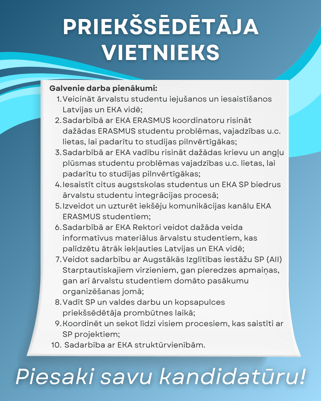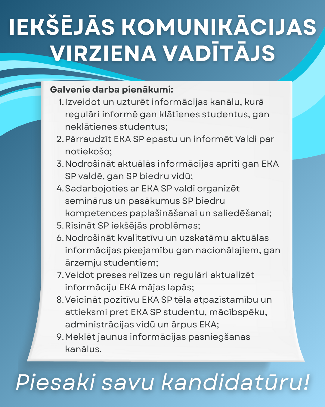 Piesaki savu kandidatūru un pievienojies valdes sastāvam, lai īstenotu savas idejas un palīdzēt virzīt EKA SP darbību uz priekšu!