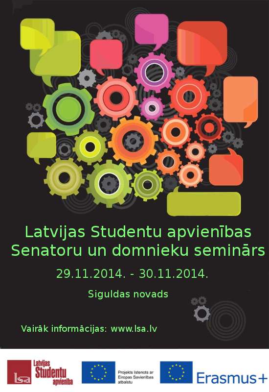 Lai veicinātu studentu kompetenci un līdzdalību augstskolu lēmējinstitūcijās, Latvijas Studentu apvienība (LSA), semināru cikla “Students - sistēmas zobrats” ietvaros, rīko Senatoru un domnieku semināru, kas norisināsies divas pilnas dienas no 29. līdz 30. novembrim Siguldas novadā.