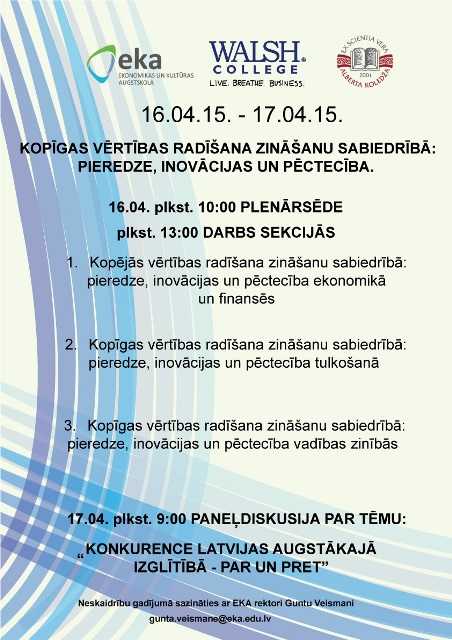 16. un 17. aprīlī norisināsies Ekonomikas un kultūras augstskolas (EKA) un Alberta koledžas (AK) rīkotā starptautiski zinātniskā konference „Kopīgas vērtības radīšana zināšanu sabiedrībā: pieredze, inovācijas un pēctecība”, kurā piedalīsies viesi no Volšas koledžas (ASV).