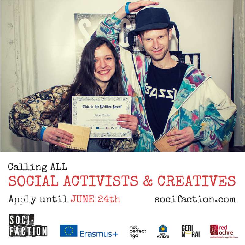 Pieteikšanās līdz 24. jūnijam: www.socifaction.com. Dalība bez maksas!