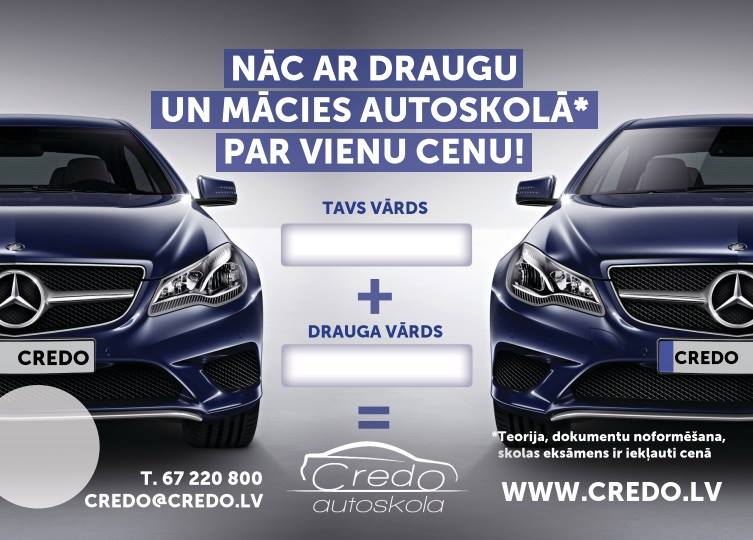Autoskola Credo piedāvā studentiem iegūt tiesības uz pusi lētāk jeb nāc ar draugu un mācies autoskolā par vienu cenu!